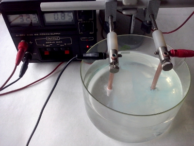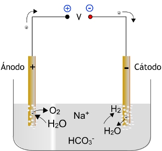 electrolisis de una disolución acuosa de NaHCO3. La sal estará