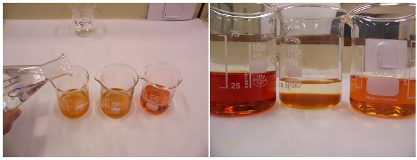 vaso central y el situado a la izquierda. El líquido sobrenadante