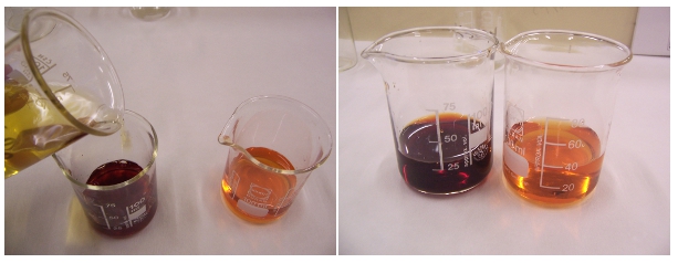 tricloruro de hierro (vaso de la izquierda). El de la derecha es