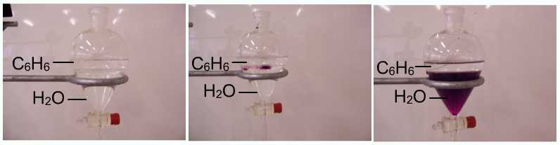 que el permanganato se disuelve en la fase acuosa y no en el disolvente no