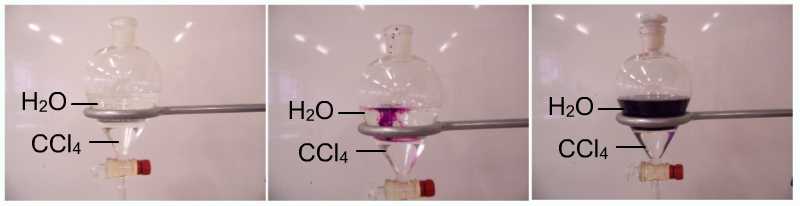 dos capas, la superior de agua y la inferior de tetracloruro de carbono