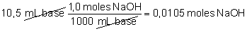 media de las valoraciones efectuadas) se han gastado 10,5 mL de base.