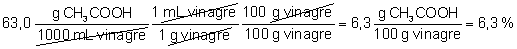 concentración en % en masa necesitamos saber la densidad del vinagre. Como