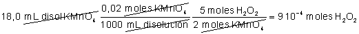 obtenido como media que se gastan 18,0 mL de permanganato de potasio