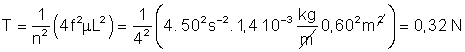 aparecerá cuando n = 2. La tensión que deberá darse a la cuerda será