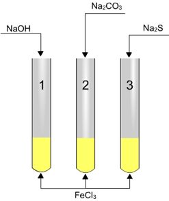 en cada uno de ellos un poco de FeCl3.